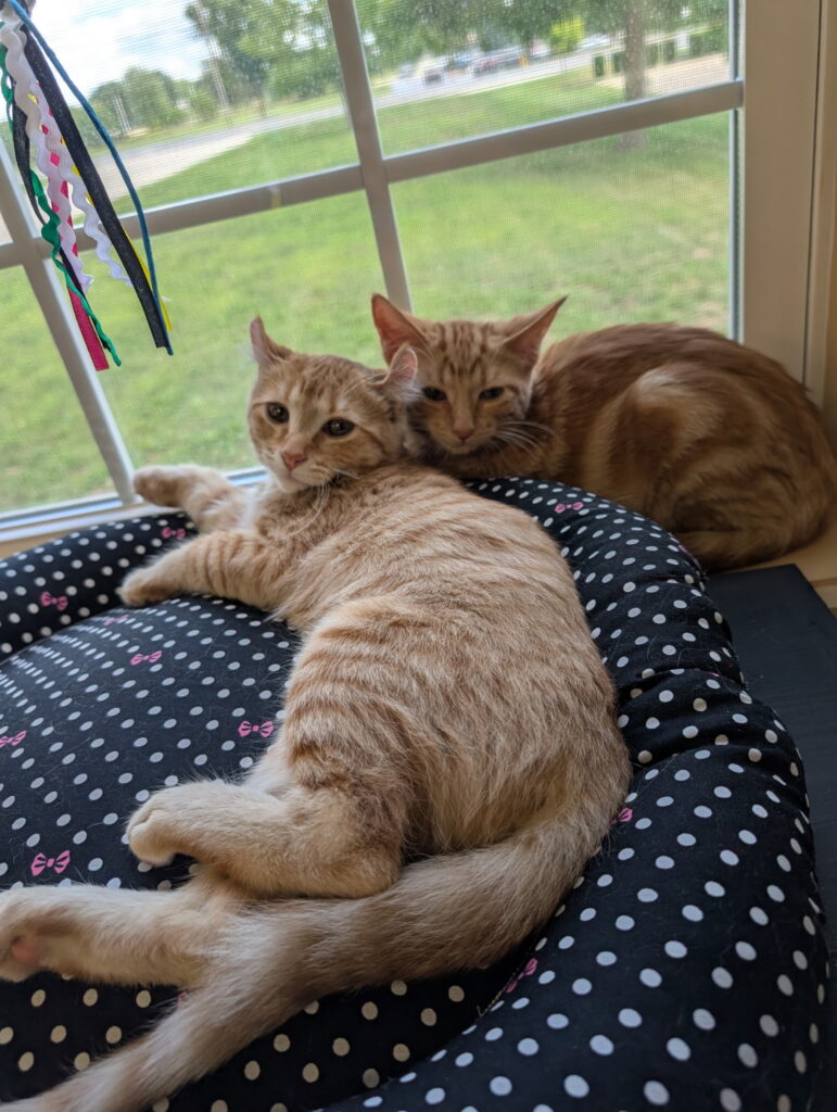 Fall in love? Our cats are adoptable through the Shiawassee Humane Society — just scan the QR code at the entrance to the lounge!